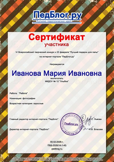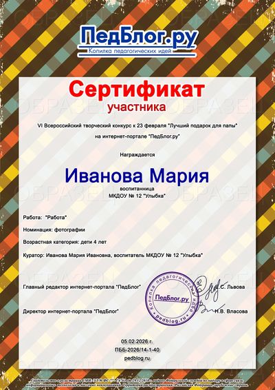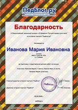 * Благодарственное письмо педагогу, заявившему 15 и более детских работ в один день, оформляется бесплатно в электронном виде!Участвуйте группами!