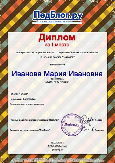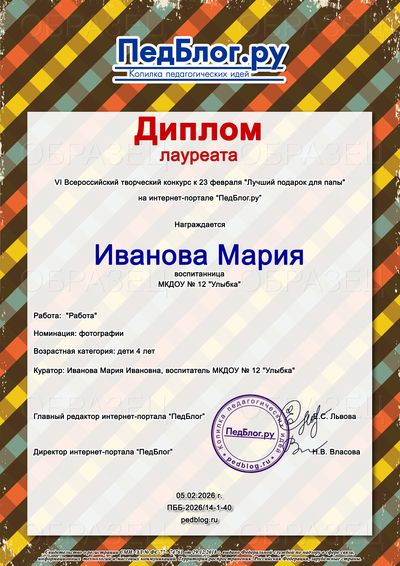 Сроки проведения конкурса: Прием работ: с 01.02.2026 г. по 28.02.2026 г. Рассылка дипломов: через 3 рабочих дня после получения заявки!