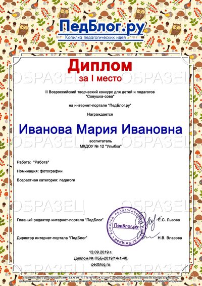 При добавлении работы на конкурс внимательно и правильно вносите свои данные во все необходимые поля. Именно то, что вы напишете при добавлении фотографии, и будет отражено в ваших дипломах. Заявки НЕЛЬЗЯ заполнять одними ЗАГЛАВНЫМИ БУКВАМИ. Перед отправлением фотографии конкурсной работы на сайт обязательно проверьте каждую букву и цифру в заявке (образец заполнения находится прямо на странице заявки). Все повторные исправления - после повторной оплаты.