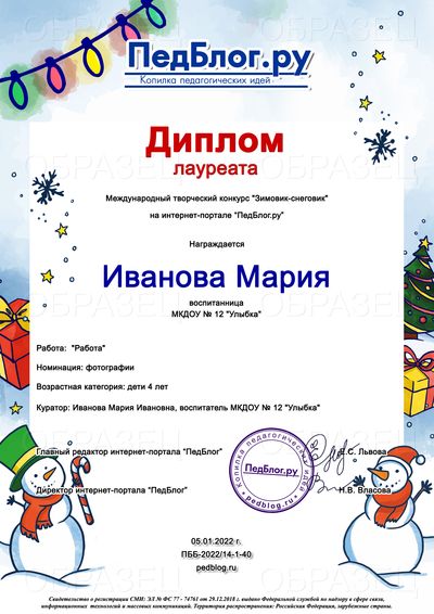Сроки проведения конкурса: Прием работ: с 01.01.2026 г. по 31.01.2026 г. Рассылка дипломов: через 3 рабочих дня после получения заявки!