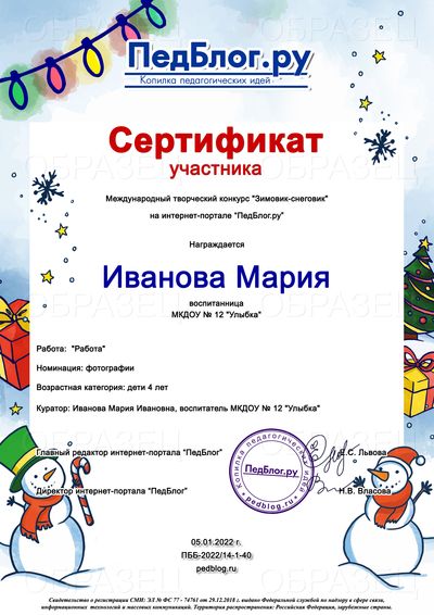* Благодарственное письмо педагогу, заявившему 15 и более детских работ в один день, оформляется бесплатно в электронном виде!Участвуйте группами!