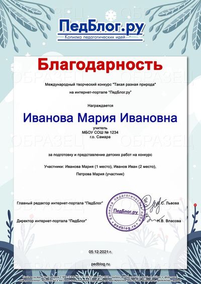 Сроки проведения конкурса: Прием работ: с 01.01.2026 г. по 31.01.2026 г. Рассылка дипломов: через 3 рабочих дня после получения заявки!
