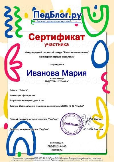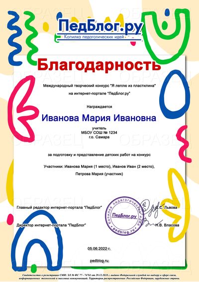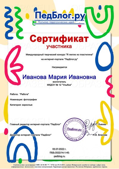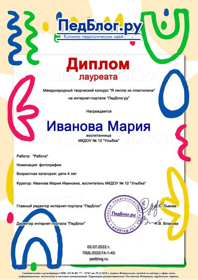 * Благодарственное письмо педагогу, заявившему 15 и более детских работ в один день, оформляется бесплатно в электронном виде!Участвуйте группами!