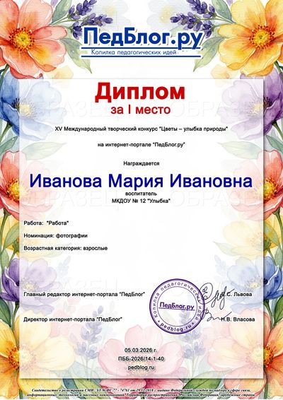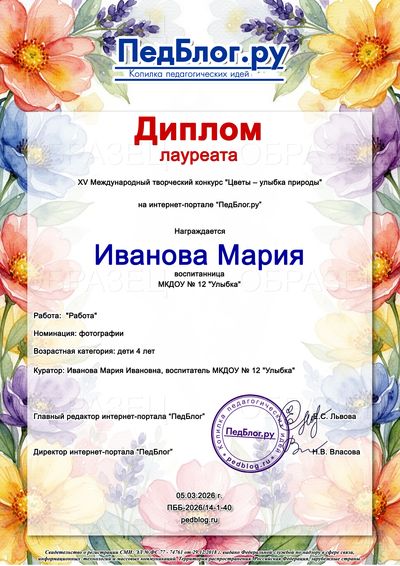 Сроки проведения конкурса: Прием работ: с 01.03.2026 г. по 31.03.2026 г. Рассылка дипломов: через 3 рабочих дня после получения заявки!