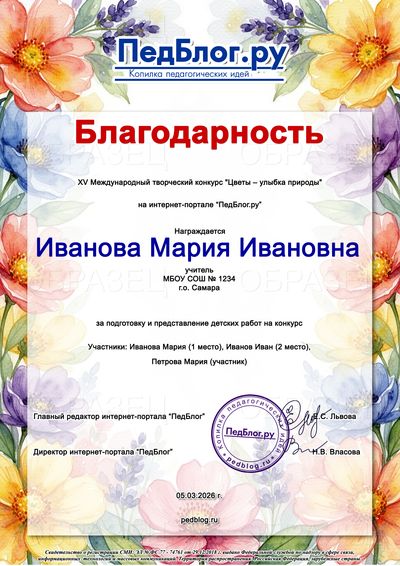 * Благодарственное письмо педагогу, заявившему 15 и более детских работ в один день, оформляется бесплатно в электронном виде!Участвуйте группами!