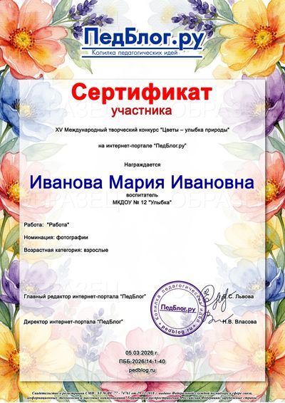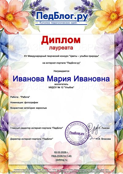 XV Международный творческий конкурс "Цветы – улыбка природы"