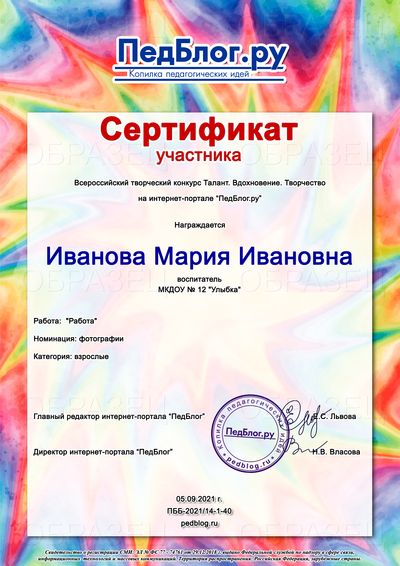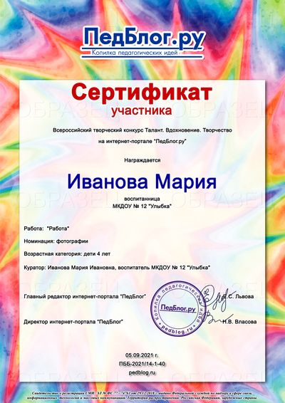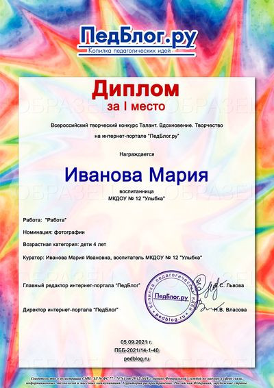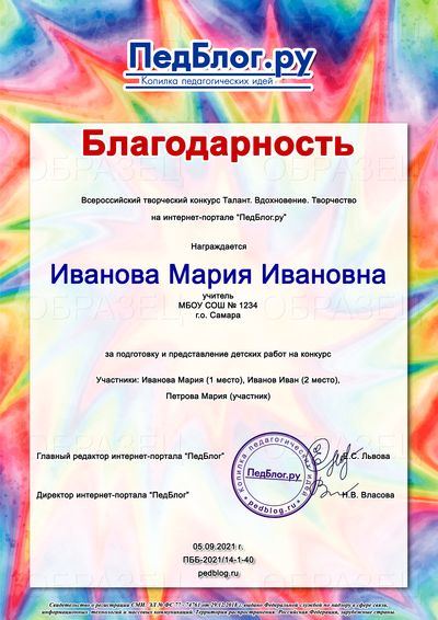 * Благодарственное письмо педагогу, заявившему 15 и более детских работ в один день, оформляется бесплатно в электронном виде!Участвуйте группами!