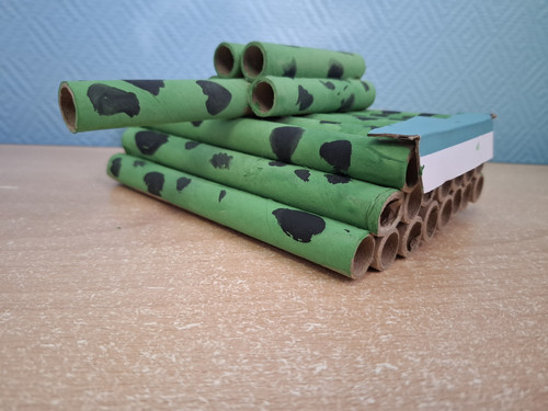 Работа выполнена из картонных трубочек и окрашена гуашью