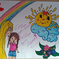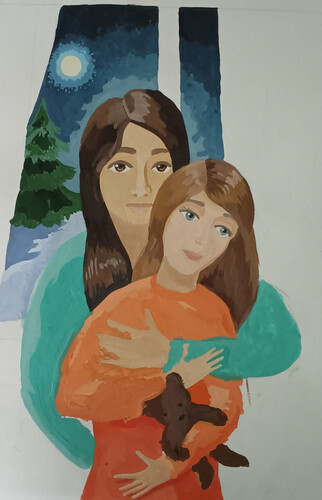 гуашь, автопортрет с мамой