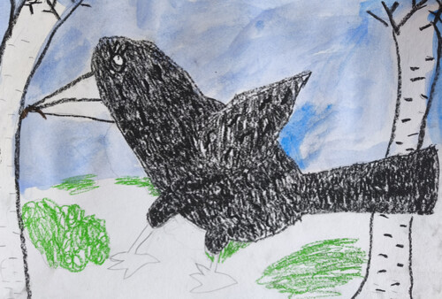 Работа выполнена масляной пастелью и акварелью