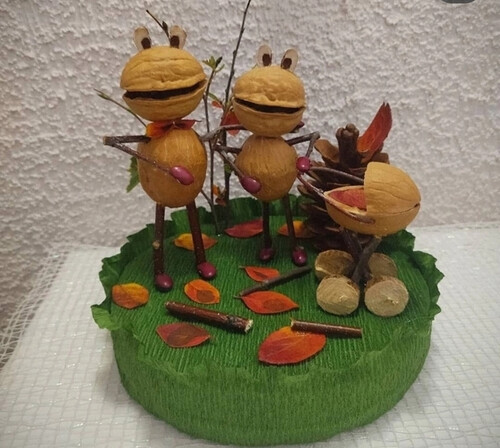 Поделка из природного материала : скорлупой грецкого ореха, фасоли и веточек