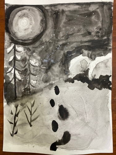 Акварель, использование одного цвета черного