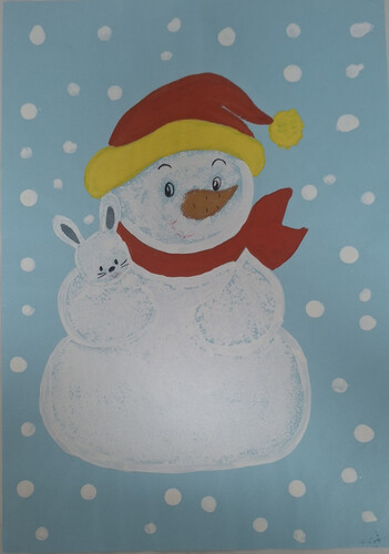 Рисунок выполнен с использование гуаши и нетрадиционной техники рисования "ватными палочками"